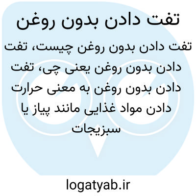تفت دادن بدون روغن به معنی حرارت دادن مواد غذایی مانند پیاز یا سبزیجات به طور مستقیم روی حرارت ملایم بدون افزودن چربی است. این روش برای خشک کردن یا کمی نرم کردن مواد قبل از افزودن مابقی مواد به کار میرود و در نتیجه بافت و طعم مواد به خوبی حفظ میشود.