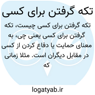 به معنای حمایت یا دفاع کردن از کسی در مقابل دیگران است. مثلا زمانی که شخصی حرفی می‌زند و دیگری به نفع او پاسخ می‌دهد، می‌گویند تکه گرفته است.