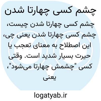 این اصطلاح به معنای تعجب یا حیرت بسیار شدید است. وقتی کسی "چشمش چهارتا می‌شود"، یعنی از شدت شگفتی نمی‌تواند کار دیگری انجام دهد.