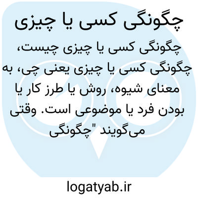 به معنای شیوه، روش یا طرز کار یا بودن فرد یا موضوعی است. وقتی میگویند "چگونگی کسی یا چیزی"، منظور نحوه عملکرد یا وضعیت آن شخص یا شیء است.