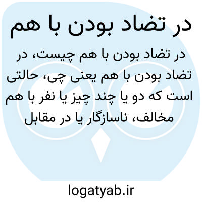حالتی است که دو یا چند چیز یا نفر با هم مخالف، ناسازگار یا در مقابل هم قرار دارند، تعارض و ناهماهنگی بین آنها وجود دارد.