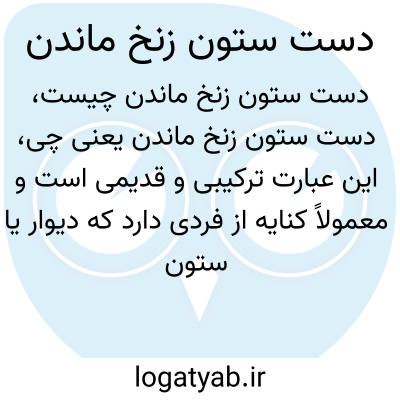 این عبارت ترکیبی و قدیمی است و معمولاً کنایه از فردی دارد که دیوار یا ستون یا تکیهگاهی پیدا نمیکند و به عبارتی بیخانمان یا بیپناه است. "زنخ ماندن" به معنی گیر کردن یا محصور شدن است. در کل منظور فردی است که دستش به هیچ جایی بند نیست و گرفتار وضع نامساعدی است.