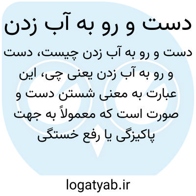 این عبارت به معنی شستن دست و صورت است که معمولاً به جهت پاکیزگی یا رفع خستگی انجام می‌شود. در فرهنگ ایرانی گاهی قبل از شروع کار یا بعد از اتمام کاری، دست و رو به آب زدن یک نوع رفرش شدن و تازه شدن است.