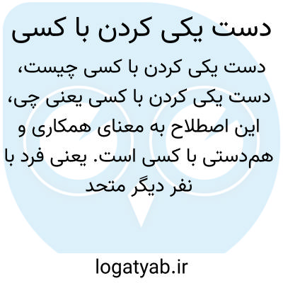 این اصطلاح به معنای همکاری و همدستی با کسی است. یعنی فرد با نفر دیگر متحد میشود تا به هدف مشترکی برسند یا در کاری مشارکت کنند.