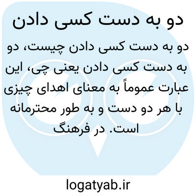 این عبارت عموماً به معنای اهدای چیزی با هر دو دست و به طور محترمانه است. در فرهنگ ایرانی، دادن و گرفتن با دو دست نشانه احترام است.