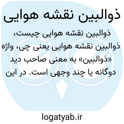 واژه «ذوالبین» به معنی صاحب دید دوگانه یا چند وجهی است. در این عبارت احتمالاً به نقشه هوایی یا تصویری هوایی اشاره دارد که با دید فراگیر و گسترده تهیه شده است. نقشه هوایی تصاویر از بالا است که برای بررسی زمین، ساختمان‌ها و جغرافیا به کار می‌رود.