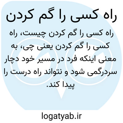 به معنی اینکه فرد در مسیر خود دچار سردرگمی شود و نتواند راه درست را پیدا کند. این عبارت هم به صورت واقعی، یعنی گم شدن در مکان، و هم به صورت مجازی، مانند گم شدن در تصمیمگیریها یا اهداف زندگی، به کار میرود.