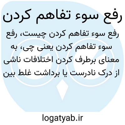 به معنای برطرف کردن اختلافات ناشی از درک نادرست یا برداشت غلط بین دو یا چند نفر است. این کار با گفتگو، توضیح دادن و روشن کردن موضوعات انجام میشود تا روابط بهبود یابد و از کدورت و دشمنی جلوگیری شود.