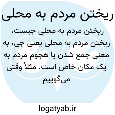 به معنی جمع شدن یا هجوم مردم به یک مکان خاص است. مثلاً وقتی میگوییم «مردم ریختند به بازار»، یعنی تعداد زیادی از مردم به بازار رفتهاند یا تجمع کردهاند.