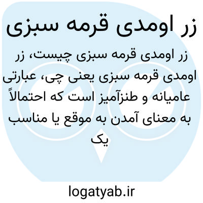 عبارتی عامیانه و طنزآمیز است که احتمالاً به معنای آمدن به موقع یا مناسب یک چیز خوشمزه مثل قرمه سبزی است و به نوعی به حسن موقعیت یا به موقع بودن اشاره دارد.