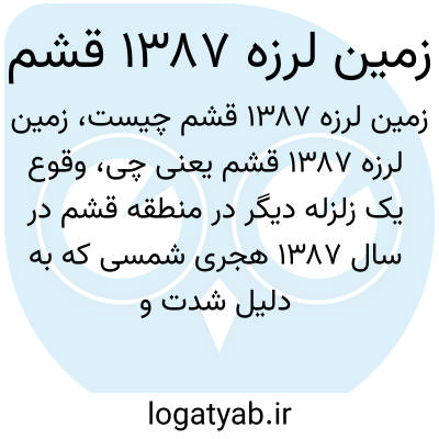 وقوع یک زلزله دیگر در منطقه قشم در سال ۱۳۸۷ هجری شمسی که به دلیل شدت و تأثیرش معمولاً در تاریخ ثبت شده و مورد مطالعه قرار می‌گیرد.