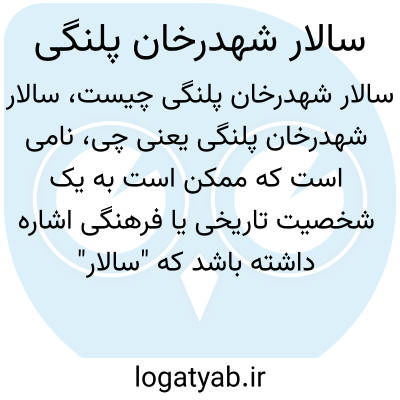 نامی است که ممکن است به یک شخصیت تاریخی یا فرهنگی اشاره داشته باشد که "سالار" به معنای فرمانده یا رئیس، "شهدرخان" نام شخص و "پلنگی" ممکن است لقب یا نام خانوادگی باشد. برای شناخت دقیقتر، به اطلاعات تاریخی مربوط به منطقه مورد نظر نیاز است.