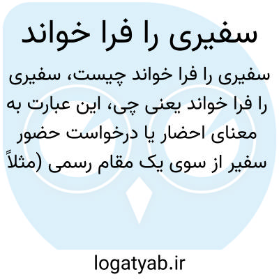 این عبارت به معنای احضار یا درخواست حضور سفیر از سوی یک مقام رسمی (مثلاً دولت یا وزارت امور خارجه) است که معمولاً برای دادن اعتراض دیپلماتیک یا انجام مذاکرات به کار می‌رود.