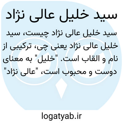ترکیبی از نام و القاب است. "خلیل" به معنای دوست و محبوب است، "عالی نژاد" دلالت بر اصالت و خانواده‌ای با ریشه بلند دارد. چنین اسمی معمولاً به فردی با پایگاه اجتماعی و خانوادگی محترم اشاره می‌کند.