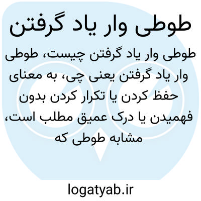 به معنای حفظ کردن یا تکرار کردن بدون فهمیدن یا درک عمیق مطلب است، مشابه طوطی که صداها را تکرار می‌کند بدون اینکه معنی آن‌ها را بداند. این اصطلاح اغلب در نقد روش‌های یادگیری سطحی به کار می‌رود.