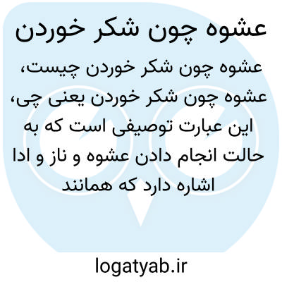 این عبارت توصیفی است که به حالت انجام دادن عشوه و ناز و ادا اشاره دارد که همانند خوردن شکر شیرین و نرم است. یعنی رفتاری ظریف، دلنشین و شیرین که حس خوبی را به همراه دارد. «عشوه» رفتاری است که معمولاً برای جلب توجه یا بیان محبت به کار میرود و تشبیه آن به شکر خوردن تداعیکننده شیرینی و لطافت است.