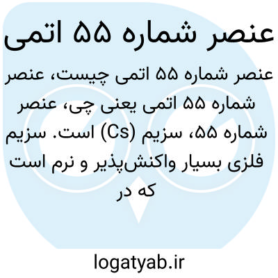 عنصر شماره ۵۵، سزیم (Cs) است. سزیم فلزی بسیار واکنشپذیر و نرم است که در آشکارسازها و ساعتهای اتمی کاربرد دارد و یکی از فلزات قلیایی محسوب میشود.