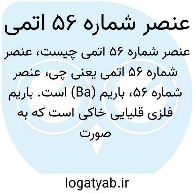 عنصر شماره ۵۶، باریم (Ba) است. باریم فلزی قلیایی خاکی است که به صورت ترکیب در مواد معدنی وجود دارد و در پزشکی برای انجام برخی مطالعات تصویربرداری (مانند باریم انما) کاربرد دارد.
