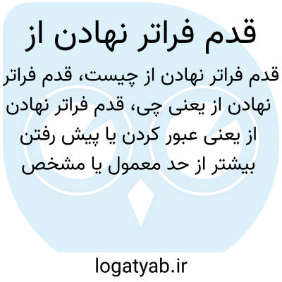 قدم فراتر نهادن از یعنی عبور کردن یا پیش رفتن بیشتر از حد معمول یا مشخص شده. این عبارت معمولاً به معنای انجام دادن کاری خارج از چارچوب یا فراتر از انتظار است.