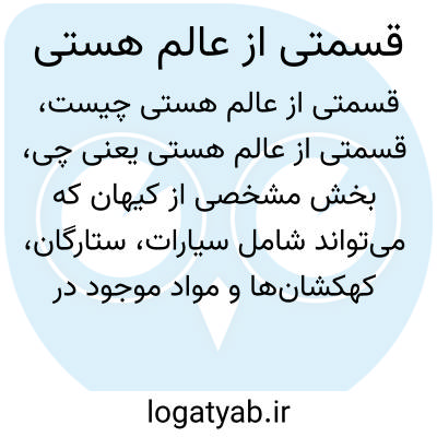 بخش مشخصی از کیهان که میتواند شامل سیارات، ستارگان، کهکشانها و مواد موجود در فضا باشد. عالم هستی به کل جهان اطلاق میشود و قسمتهای مختلف آن طیف وسیعی از موجودات و پدیدهها را در برمیگیرد.