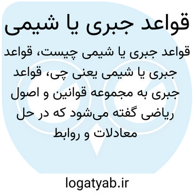 قواعد جبری به مجموعه قوانین و اصول ریاضی گفته میشود که در حل معادلات و روابط حسابی کاربرد دارد، در حالی که قواعد شیمی، قوانین و اصول مربوط به واکنشها و رفتار مواد شیمیایی در آزمایشگاه و طبیعت هستند.