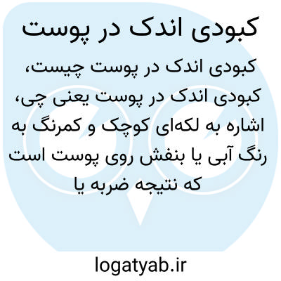 اشاره به لکه‌ای کوچک و کمرنگ به رنگ آبی یا بنفش روی پوست است که نتیجه ضربه یا فشار است و به تدریج فروکش می‌کند. کبودی ناشی از خون‌ریزی زیرپوستی است.