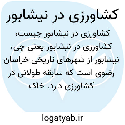 نیشابور از شهرهای تاریخی خراسان رضوی است که سابقه طولانی در کشاورزی دارد. خاک حاصلخیز، آب مناسب و شرایط اقلیمی مساعد باعث شده کشاورزی، مخصوصاً کاشت گندم، جو، زعفران و میوههایی مانند انار در این منطقه رواج داشته باشد.
