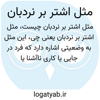 این مثل به وضعیتی اشاره دارد که فرد در جایی یا کاری ناآشنا یا نامناسب قرار گرفته و نمی‌تواند به خوبی از پس آن برآید، درست مثل شتر که نمی‌تواند روی نردبان بالا برود. به بیان دیگر، کسی که به طور نابه‌جا در شرایطی دشوار یا نامناسب گرفتار شده است.