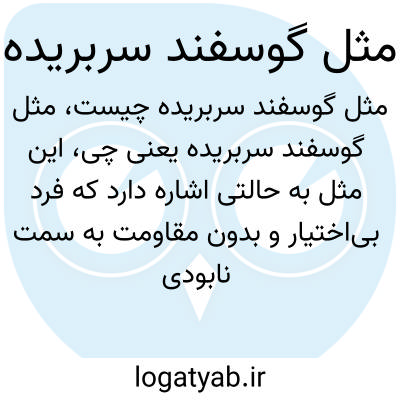 این مثل به حالتی اشاره دارد که فرد بیاختیار و بدون مقاومت به سمت نابودی یا نتیجهای نامطلوب پیش میرود، درست مانند گوسفندی که پس از بریدن گردنش، بدون اعتراض میرود و هیچگونه مخالفتی نشان نمیدهد.