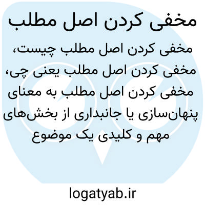 مخفی کردن اصل مطلب به معنای پنهانسازی یا جانبداری از بخشهای مهم و کلیدی یک موضوع یا حقیقت است که باعث میشود مخاطب به درستی مفهوم یا واقعیت پشت ماجرا پی نبرد؛ این کار اغلب در سیاست، رسانهها یا گفتگوهای رسمی انجام میشود تا واقعیت به صورت کامل فاش نشود.