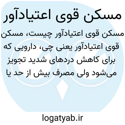دارویی که برای کاهش دردهای شدید تجویز میشود ولی مصرف بیش از حد یا طولانیمدت آن میتواند باعث وابستگی جسمی و روانی شود. این گونه مسکنها معمولا جزء مواد مخدر طبقهبندی میشوند و کنترل مصرف آنها اهمیت زیادی دارد.