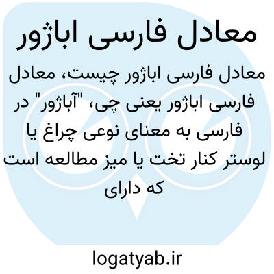 "آباژور" در فارسی به معنای نوعی چراغ یا لوستر کنار تخت یا میز مطالعه است که دارای سایهبندی برای کاهش نور مستقیم میباشد؛ معادل دقیق آن شاید "چراغ پایهدار سایهدار" یا "چراغ مطالعه" باشد.