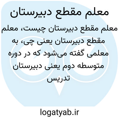 به معلمی گفته میشود که در دوره متوسطه دوم یعنی دبیرستان تدریس میکند. این معلم مسئول آموزش دروس تخصصی و آمادهسازی دانشآموزان برای ورود به دانشگاه و یا بازار کار است.