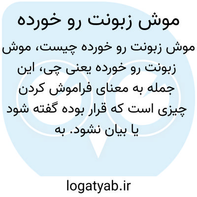 این جمله به معنای فراموش کردن چیزی است که قرار بوده گفته شود یا بیان نشود. به طور کلی وقتی کسی چیزی را فراموش میکند یا قادر به بیان آن نیست، میگویند: «موش زبونت را خورده» که حالت طنز و عامیانه دارد.
