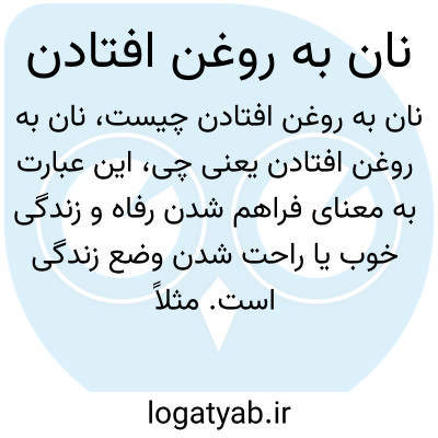 این عبارت به معنای فراهم شدن رفاه و زندگی خوب یا راحت شدن وضع زندگی است. مثلاً وقتی می‌گوییم «نان به روغن افتاد» یعنی معیشت شخص یا خانواده به حالت بهتر و راحت‌تر درآمده است، به‌عبارتی وضع مالی بهتر شده یا شرایط زندگی بهبود یافته است.
