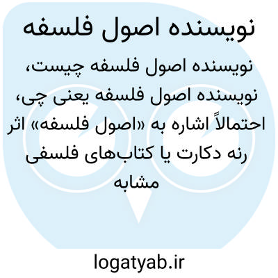 احتمالاً اشاره به «اصول فلسفه» اثر رنه دکارت یا کتاب‌های فلسفی مشابه دارد. نویسنده این اثر فردی است که به تبیین مبانی فلسفی و اصول علمی زندگی، شناخت و حقیقت می‌پردازد. چنین اثری معمولاً شامل مباحثی همچون متافیزیک، معرفت‌شناسی، منطق و اخلاق است و نقش مهمی در تاریخ تفکر فلسفی ایفا کرده است.