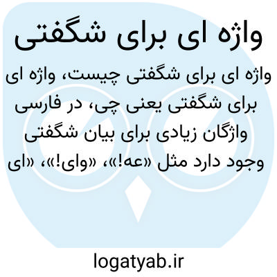 در فارسی واژگان زیادی برای بیان شگفتی وجود دارد مثل «عه!»، «وای!»، «ای بابا!»، «آه!» و کلمات ادبیتر مانند «تعجب»، «حیرت» و «بهت». این واژگان برای ابراز احساس ناگهانی و غیرمنتظره به کار میروند.