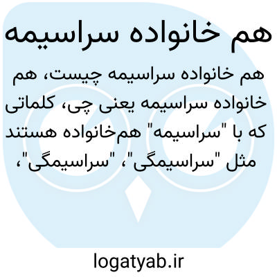 کلماتی که با "سراسیمه" هم‌خانواده هستند مثل "سراسیمگی"، "سراسیمگی"، "سراسیمگی". این خانواده لغوی به مفهوم اضطراب، نگرانی و حالت آشفتگی روحی مرتبط است که در زبان فارسی برای توصیف حالت‌های هیجانی به کار می‌رود.