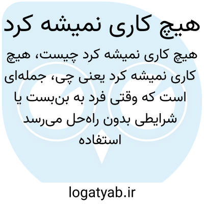 جملهای است که وقتی فرد به بنبست یا شرایطی بدون راهحل میرسد استفاده میکند و بیانگر این است که هیچ راه عملی برای حل مشکل یا تغییر وضعیت وجود ندارد.