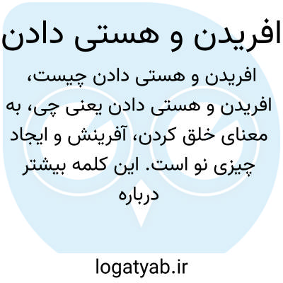 به معنای خلق کردن، آفرینش و ایجاد چیزی نو است. این کلمه بیشتر درباره خداوند یا نیروهای طبیعت به کار می‌رود که جهان و موجودات را به وجود آورده‌اند.