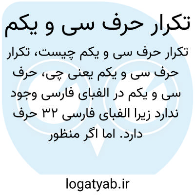 حرف سی و یکم در الفبای فارسی وجود ندارد زیرا الفبای فارسی 32 حرف دارد. اما اگر منظور حرف سیام یا سی و یکم به صورت مزاح یا بازی با حروف باشد، معمولاً اشاره به تکرار یک حرف یا صدا دارد که شاید در زبان یا شعر برای تأکید یا ریتم به کار رود.