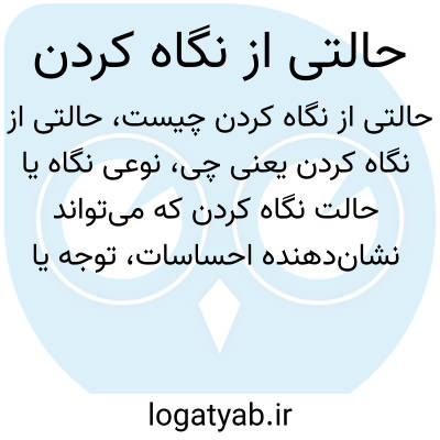 نوعی نگاه یا حالت نگاه کردن که میتواند نشاندهنده احساسات، توجه یا منظور خاصی باشد؛ مانند نگاه محبتآمیز، خیره، کنجکاو یا ترسیده که هر کدام بار معنایی متفاوتی دارد.