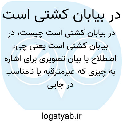 اصطلاح یا بیان تصویری برای اشاره به چیزی که غیرمترقبه یا نامناسب در جایی قرار گرفته باشد، مثلاً تصویری از کشتی‌ای که در منطقه بیابانی خشک و بدون آب است و به تناقض و شگفتی اشاره دارد.
