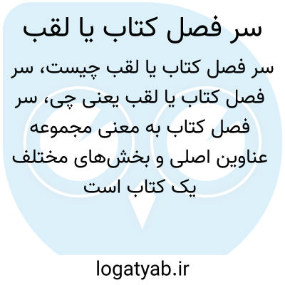 سر فصل کتاب به معنی مجموعه عناوین اصلی و بخش‌های مختلف یک کتاب است که به صورت فهرست ارائه می‌شود تا خواننده بتواند موضوعات را بهتر دنبال کند. لقب نیز به معنی نام یا عنوانی است که به شخص یا چیزی نسبت داده می‌شود و نمایانگر ویژگی، مقام یا شخصیت وی است.