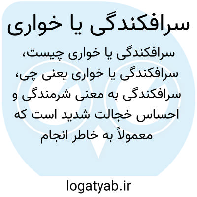 سرافکندگی به معنی شرمندگی و احساس خجالت شدید است که معمولاً به خاطر انجام خطا یا شکست در برابر دیگران ایجاد میشود. خواری نیز به معنای ذلت و بیاحترامی است که فرد یا گروهی دچار آن میشود.