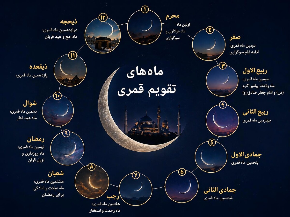 «ماهی در تقویم قمری» به هر یک از دوازده بخش زمانی سال قمری گفته میشود که بر اساس گردش ماه به دور زمین و رؤیت هلال ماه نو تعیین میگردد. در این گاهشماری، هر ماه معمولاً ۲۹ یا ۳۰ روز دارد، زیرا مبنای آن چرخه هلالی ماه است که به طور متوسط حدود ۲۹٫۵ روز طول میکشد. سال قمری در مجموع شامل ۱۲ ماه و برابر با ۳۵۴ یا ۳۵۵ روز است؛ ازاینرو حدود ۱۰ تا ۱۱ روز از سال شمسی کوتاهتر است و به همین دلیل ماههای قمری در فصلهای مختلف جابهجا میشوند. مبدأ این تقویم، هجرت پیامبر اسلام(ص) از مکه به مدینه است و به همین سبب «هجری قمری» نامیده میشود. ماههای این تقویم بهترتیب عبارتاند از: محرم، صفر، ربیعالاول، ربیعالثانی، جمادیالاول، جمادیالثانی، رجب، شعبان، رمضان، شوال، ذیقعده و ذیحجه. آغاز هر ماه با مشاهده هلال ماه جدید مشخص میشود و در برخی موارد ممکن است بر اساس رؤیت محلی یا محاسبات نجومی اختلاف جزئی در شروع ماه وجود داشته باشد. این ماهها در تعیین مناسبتهای مهم دینی مانند رمضان، عید فطر، عید قربان و ایام حج نقش اساسی دارند. از نظر علمی، ماه در تقویم قمری یک واحد زمانی نجومی است که مستقیماً از حرکت طبیعی ماه استخراج شده است. در یک تعریف جامع، ماه در تقویم قمری واحد اصلی سنجش زمان بر پایه گردش ماه و مبنای تنظیم سال هجری اسلامی است.