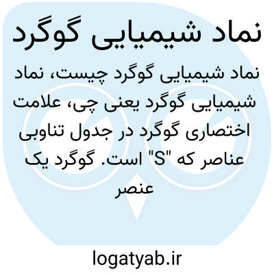 علامت اختصاری گوگرد در جدول تناوبی عناصر که "S" است. گوگرد یک عنصر شیمیایی غیر فلزی است که در طبیعت به صورت ساده و ترکیبهای متعدد یافت میشود و کاربردهای زیادی دارد.