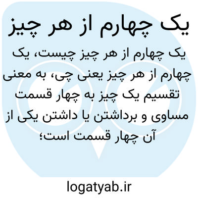 به معنی تقسیم یک چیز به چهار قسمت مساوی و برداشتن یا داشتن یکی از آن چهار قسمت است؛ مثلا یک چهارم کیک یعنی یک قسمت از چهار قسمت مساوی کیک.