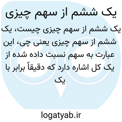 این عبارت به سهم نسبت داده شده از یک کل اشاره دارد که دقیقاً برابر با یک ششم آن کل است؛ یعنی اگر چیزی را به شش قسمت تقسیم کنیم، سهم یک قسمت آن.
