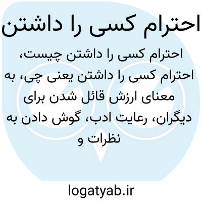 به معنای ارزش قائل شدن برای دیگران، رعایت ادب، گوش دادن به نظرات و برخورد مناسب با افراد است. احترام گذاشتن باعث برقراری رابطه سالم و مثبت با دیگران میشود.